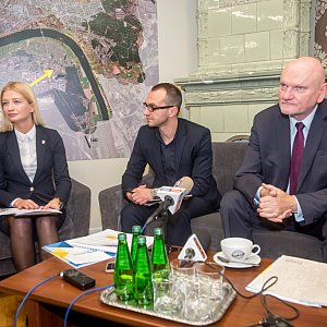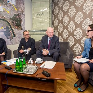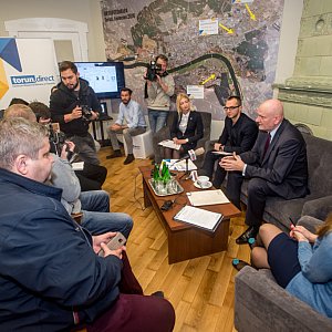 Od prawej: prezydent Torunia Michał Zaleski oraz Łukasz Szarszewski i Marta Milde z CWB, fot. Tomasz Berent