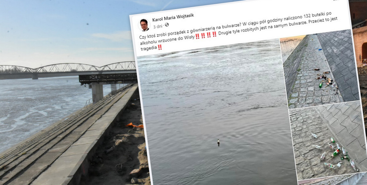 - W ciągu pół godziny naliczono 132 butelki po alkoholu wrzucone do Wisły Drugie tyle rozbitych jest na samym bulwarze. Przecież to jest tragedia