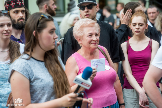 Sympatycy m.in. partii Razem pod pomnikiem Mikołaja Kopernika manifestowali sprzeciw wobec szerzącej się fali rasizmu i ksenofobii. Kilkadziesiąt osób krzyczało: "Precz z faszyzmem, precz z rasizmem", a wśród nich Krystyna Kuta - legenda toruńskiej solidarności. Pomimo wcześniejszych zapewnień zabrakło ks. Wojciecha Lemańskiego.