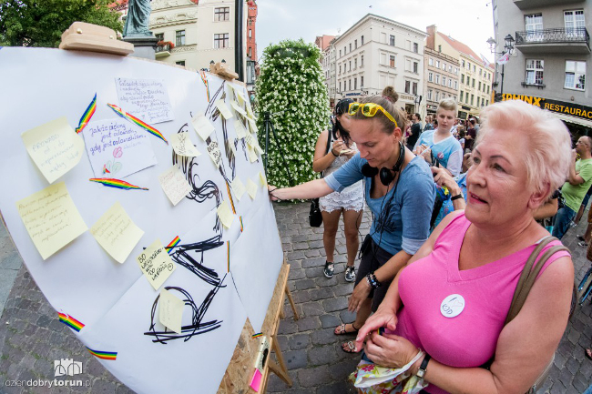 Kończąc spotkanie pod pomnikiem Mikołaja Kopernika organizatorzy kampanii zbierali podpisy pod apelem do Michała Zaleskiego. Prosili, aby prezydent potępiał zachowania rasistowskie i wspierał równościowe działania edukacyjne.