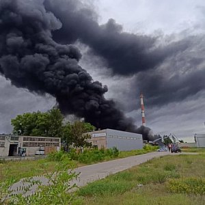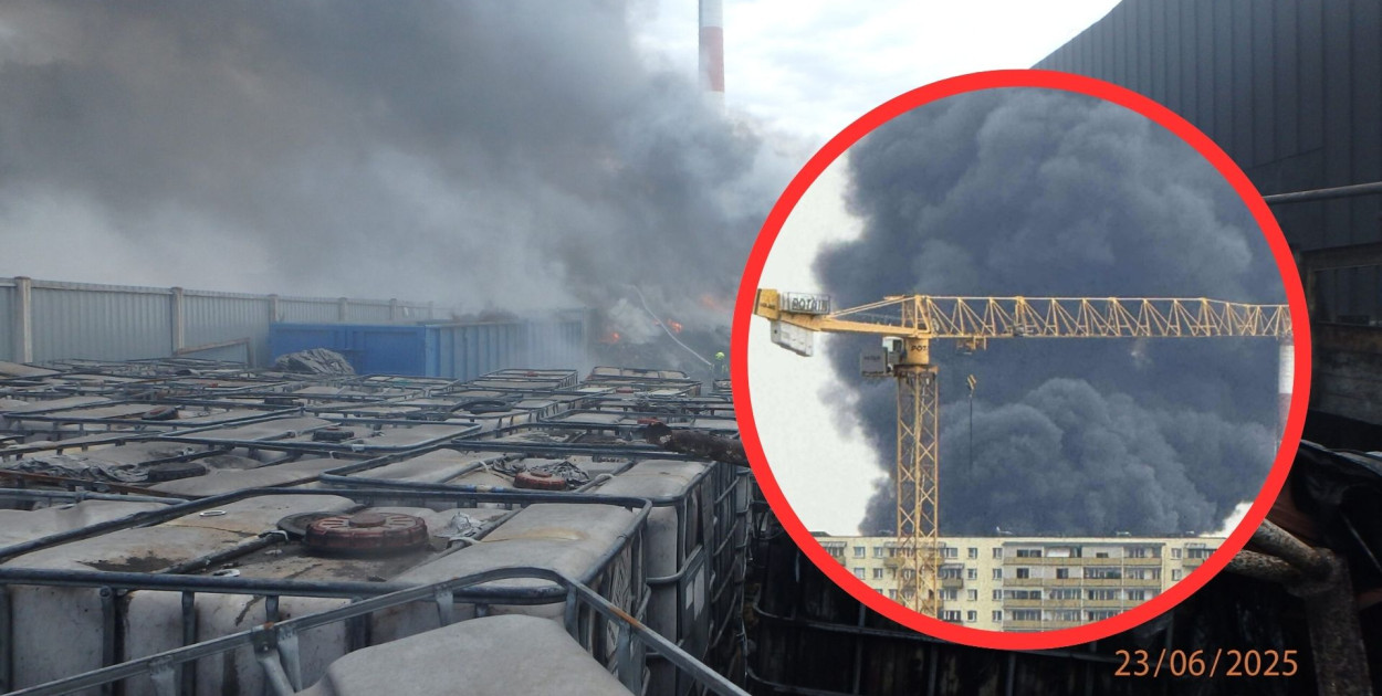 Czarny dym nad miastem, płonęły odpady i mauzery z olejem. WIOŚ ujawnia szczegóły poniedziałkowego pożaru w Toruniu.