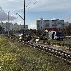 Obecnie prace toczą się na torze północnym – ruch tramwajów odbywa się wahadłowo po torze południowym. Ekipy budowlane usuwają kolizje z siecią ciepłowniczą i gazową oraz układają kable zasilające oświetlenie i sieć teletechniczną.