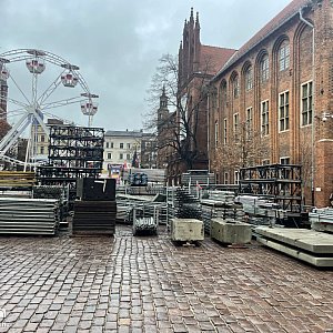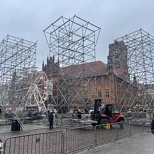 W poniedziałek (8 grudnia) na Rynku Staromiejskim ruszyły intensywne przygotowania do tegorocznego Sylwestra z Polsatem. Od wczesnych godzin porannych na starówce pojawiły się ekipy techniczne, a centralna część rynku została ogrodzona. Konstrukcja sceny dopiero rośnie, ale już teraz widać, że będzie to instalacja porównywalna rozmiarem do ogromnej zeszłorocznej platformy, która zdominowała panoramę toruńskiej starówki.