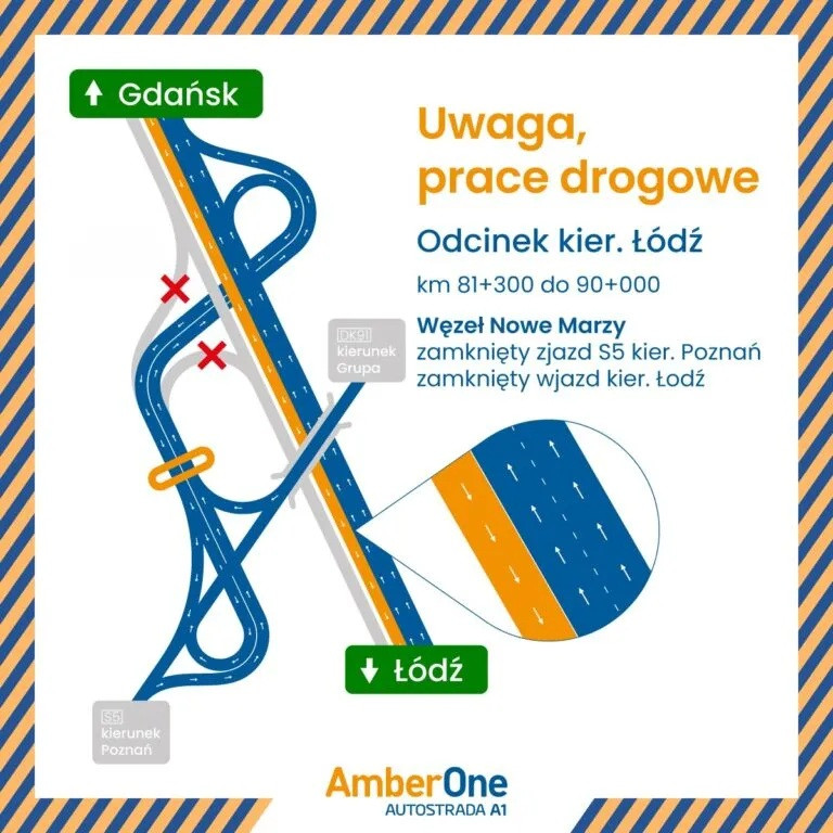 Jak przekazuje Amber One, jeszcze przez kilka dni na węźle Nowe Marzy nie ma możliwości ani wjazdu, ani zjazdu na autostradę A1 w kierunku Łodzi. Utrudnienia mają związek z prowadzonym remontem jezdni.