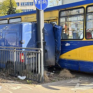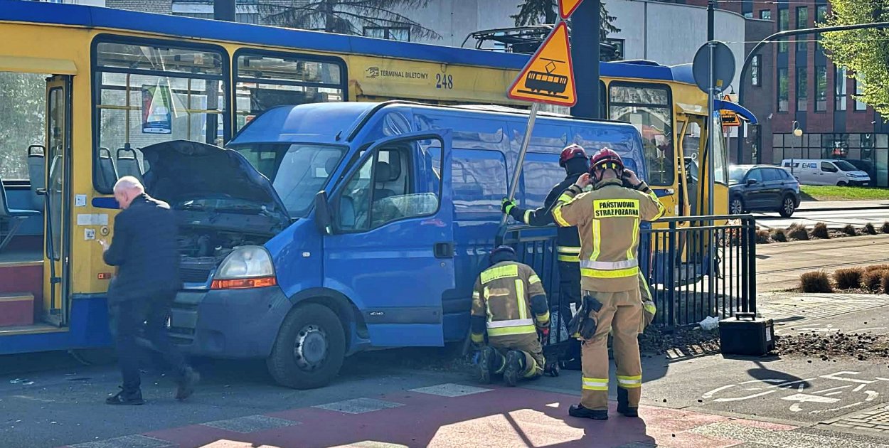 Teraz wiadomo już więcej. Jak ustaliliśmy na miejscu, doszło do zderzenia busa z tramwajem. Siła uderzenia była duża – samochód został przygnieciony do barierek oddzielających torowisko. Widać wyraźne uszkodzenia zarówno pojazdu, jak i infrastruktury.