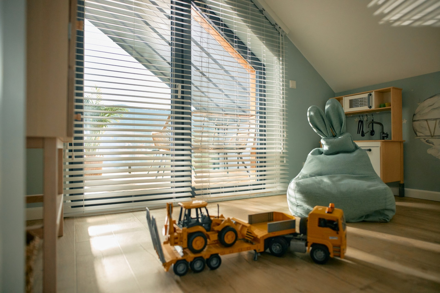 • W pomieszczeniach, gdzie liczy się subtelność, zastosować lamele o szerokości 25 mm — dla lekkiego, klimatycznego zacienienia mniejszych okien.