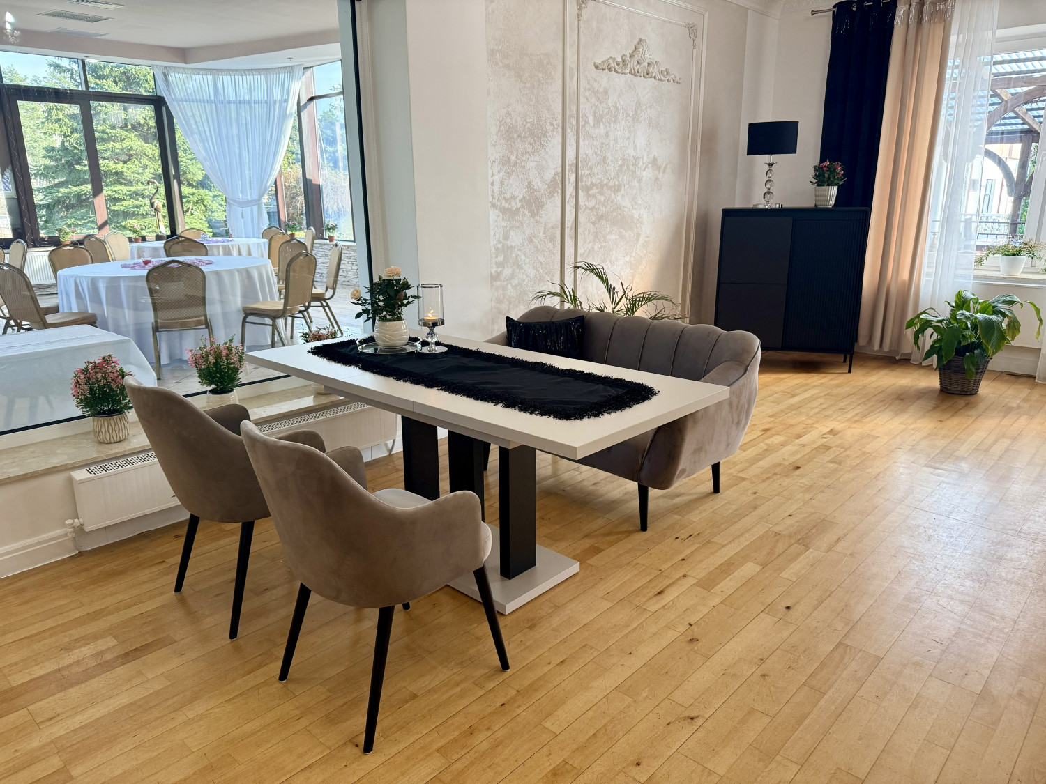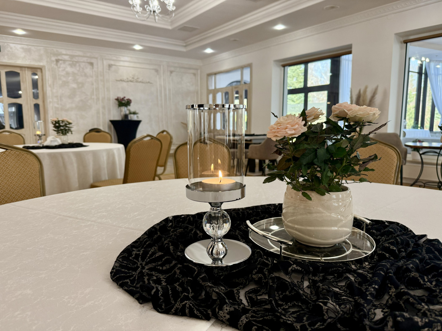 Do wyboru są dwie wyjątkowe aranżacje: sala „złota” i sala „srebrna”. Każda z nich ma swój niepowtarzalny charakter, dzięki czemu bez trudu można dopasować klimat wnętrza do stylu wydarzenia – od klasycznej elegancji po nowoczesne przyjęcia.