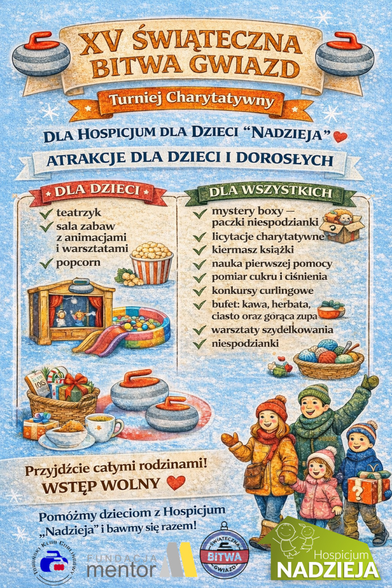 – Nasza Bitwa toczy się przede wszystkim o pomoc dla Hospicjum Nadzieja w ich codziennych potrzebach, a na dalszy plan schodzi curlingowa rywalizacja, gdzie promujemy dyscyplinę olimpijską jaką jest curling – przekazuje Mateusz Kulik.