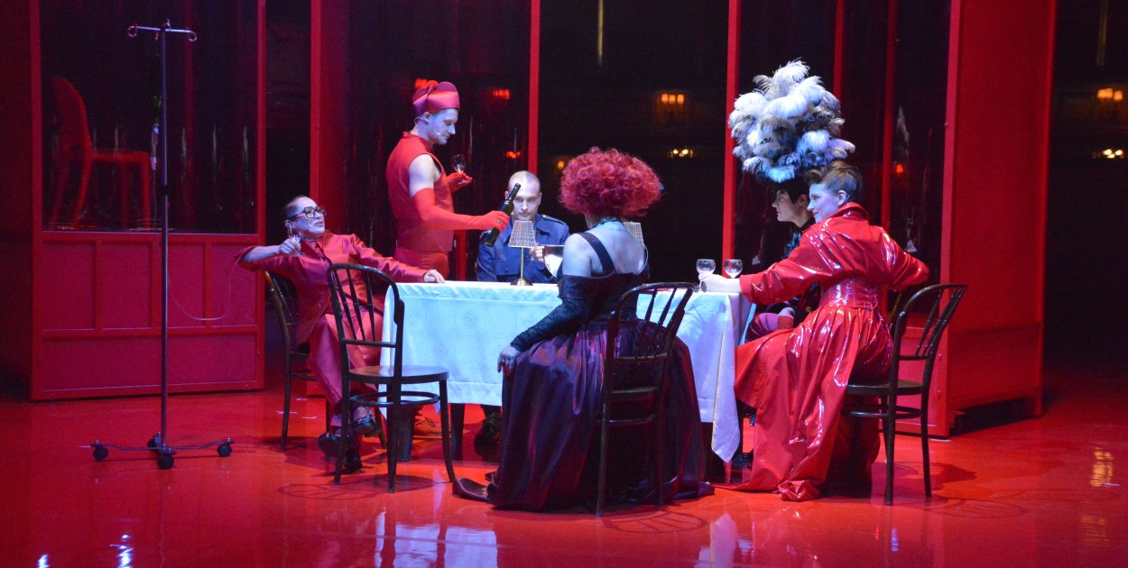 Reżyser Sławomir Narloch stawia na mocną, wyrazistą konwencję. Kluczowym elementem spektaklu jest zderzenie tekstu Voltaire’a z malarstwem Andrzeja Wróblewskiego. To zabieg, który nadaje całości zupełnie inny, bardziej niepokojący ton.