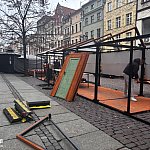 W niedzielę, 21 grudnia, zakończył się Jarmark Bożonarodzeniowy w Toruniu. Dziś zajrzeliśmy na Rynek Staromiejski, gdzie od rana trwały intensywne prace związane z porządkowaniem terenu po świątecznej imprezie. Drewniane budki zostały już rozebrane, a dekoracje świąteczne starannie zapakowane i przygotowane do przechowania.