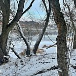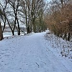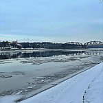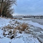 Rzeka niesie lodowe tafle, a śnieg przykrył ścieżki spacerowe i naturalne zakamarki wyspy, zmieniając to miejsce w prawdziwie zimową przestrzeń.