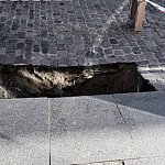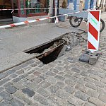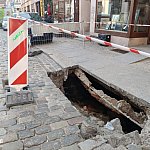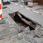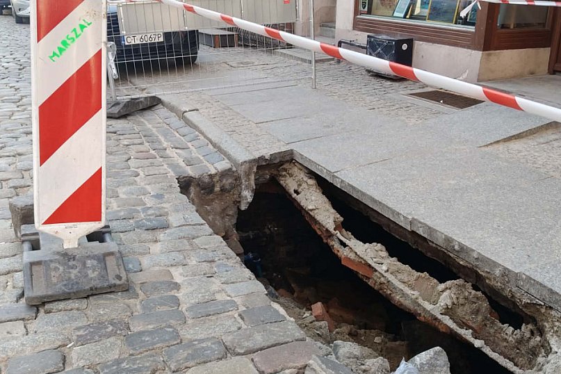 Niecodzienny widok na toruńskiej starówce. Jeden z czytelników poinformował nas o zapadniętym chodniku przy ul. Ducha Świętego. W miejscu pojawiła się spora dziura.