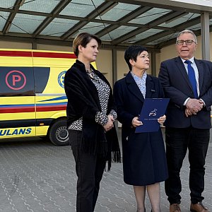 Konferencja przed szpitalem w Aleksandrowie Kuj.