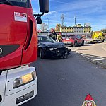 Na ul. Zaułek Dworcowy w Toruniu zderzyły się dwa auta. Na miejscu działała straż pożarna.