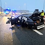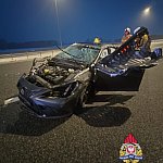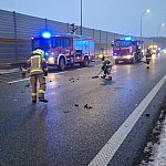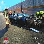 O poranku na autostradzie A1 doszło do groźnego zderzenia auta osobowego z ciężarówką. Na miejsce wezwano służby ratunkowe, jedna osoba została przewieziona do szpitala.