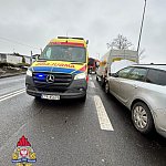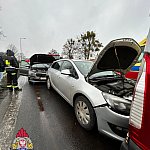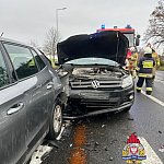 Karambol na DK91 w Ostaszewie. Pięć samochodów, cztery osoby w szpitalu, duże siły straży pożarnej i utrudnienia na trasie.