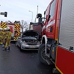 Zderzenie dwóch aut na krajówce pod Toruniem. Jedna osoba trafiła do szpitala. Na miejscu działały trzy jednostki OSP.