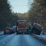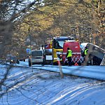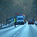 Na miejscu pracują już służby techniczne. Ze względu na gabaryty autobusu jego wydobycie z rowu jest skomplikowane i – jak słyszymy – może potrwać nawet kilka godzin.