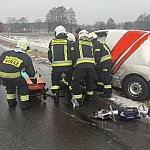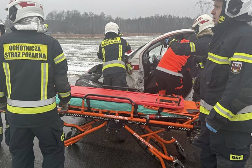Jeden z kierowców został zakleszczony w rozbitym pojeździe. Strażacy musieli użyć specjalistycznego sprzętu hydraulicznego, aby wydostać poszkodowanego z wnętrza auta i przekazać go zespołom ratownictwa medycznego.