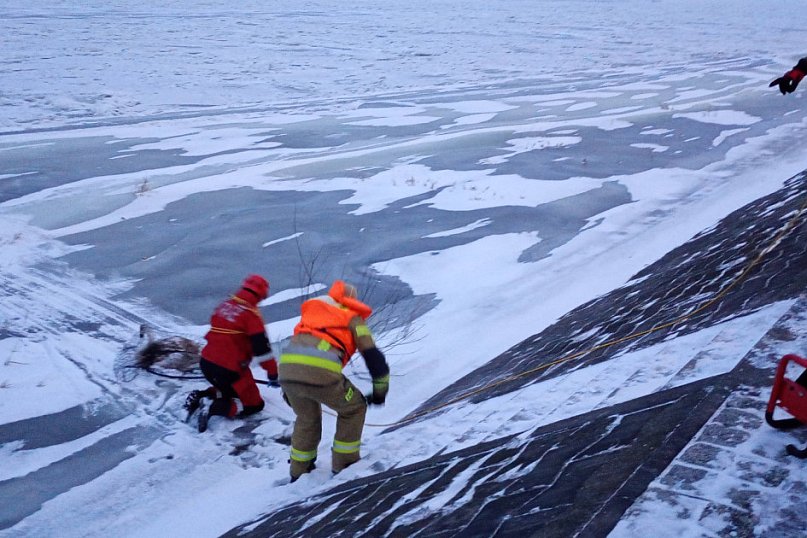 Na zamarzniętej rzece utknął łabędź, który nie był w stanie samodzielnie się uwolnić. Na pomoc ruszyli strażacy i ekopatrol.