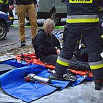 Strażacy pracowali przy rozcinaniu karoserii, aby wydostać „poszkodowanych” z wnętrza aut.
