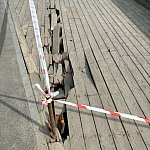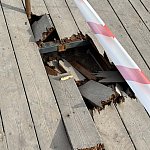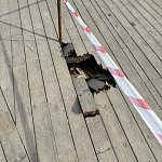 Na toruńskim bulwarze znów pojawił się problem z uszkodzonym pomostem. Na drewnianej konstrukcji prowadzącej nad Wisłę powstała dziura. Wszystko wskazuje na to, że ktoś wjechał tam samochodem.