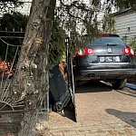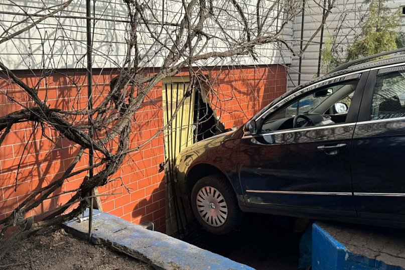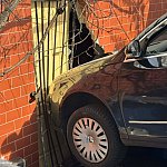 Groźnie wyglądające zdarzenie na ulicy Piaski we Włocławku. Samochód osobowy staranował bramę i uderzył w budynek mieszkalny.