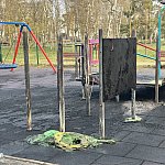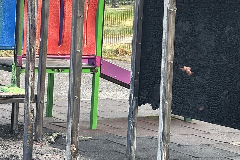 Najbardziej rzucają się w oczy zniszczone elementy urządzeń. Plastikowa karuzela jest stopiona, a drewniane fragmenty domku ze zjeżdżalnią zostały zwęglone.