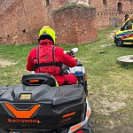 Na miejsce natychmiast skierowano ratowników z grupy interwencyjnej. Działania prowadzono równolegle z wykorzystaniem łodzi motorowej oraz quada ratowniczego, co pozwoliło szybko sprawdzić teren i dotrzeć do wskazanego miejsca.