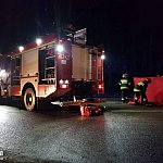 Strzyżawa, pow bydgoski, DK 80, piątek, godz. 17.16. Wypadek samochodu osobowego i motoroweru. Reanimacja kierującego motorowerem przez ZRM nieudana. Lekarz stwierdził zgon. Droga całkowicie zablokowana. Na miejscu 1 zastęp PSP. Fot. Bydgoszcz 998