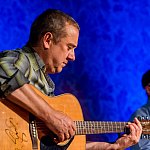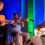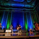 Podczas kolejnej odsłonie Koncertów pod Gwiazdami w Dworze Artusa wystąpił Adam Nowak i Akustyk Amigos, czyli Jarek Treliński z Raz Dwa Trzy i Karim Martusewicz z Voo Voo. Podczas toruńskiego koncertu dołączyli do nich: trębacz Eldis la Rosa oraz perkusista Paweł Dobrowolski. Fot. Tomasz Berent
