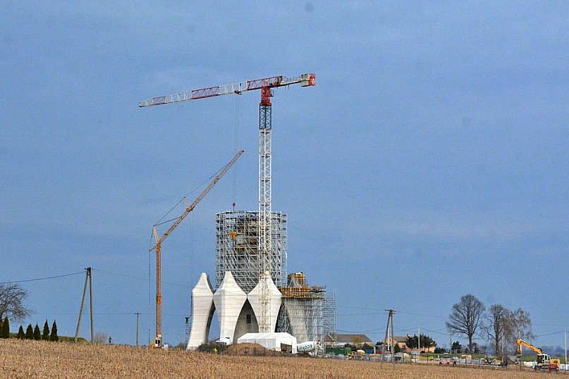 Budowa monumentalnego pomnika Matki Boskiej w Konotopiu nabiera tempa. Gigantyczna konstrukcja rośnie z dnia na dzień i już teraz góruje nad okolicą. Na miejscu pracują dziesiątki osób, a z każdym tygodniem widać coraz większy postęp.