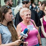 krzyczało kilkadziesiąt osób. Na proteście pojawiła się również Krystyna Kuta, legenda toruńskiej Solidarności. Zabrakło jednak ks. Wojciecha Lemańskiego, który miał manifestować razem z aktywistami.