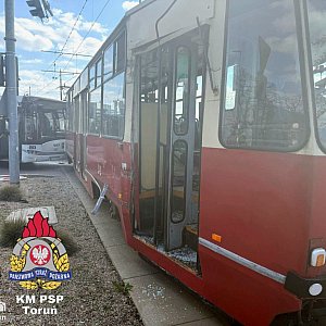 Tramwaj i autobus zderzyły się w centrum Torunia