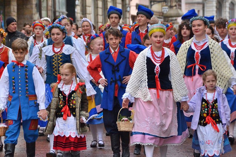 Kolorowy korowód, ludowe stroje i wielkanocna tradycja w centrum miasta. Tak wyglądała „Święconka na ludowo” w Toruniu.