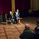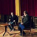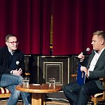 Spotkanie w Dworze Artusa z Tomaszem Sianeckim, dziennikarzem TVN24, gospodarzem programu Szkło Kontaktowe w ramach Forte Artus Festival. Gospodarzem był Tomasz Pasiut. fot. Sonia Tlili