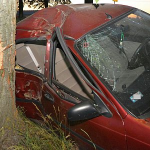 Po tym zderzeniu auta zjechały na pobocze i uderzyły w drzewa.