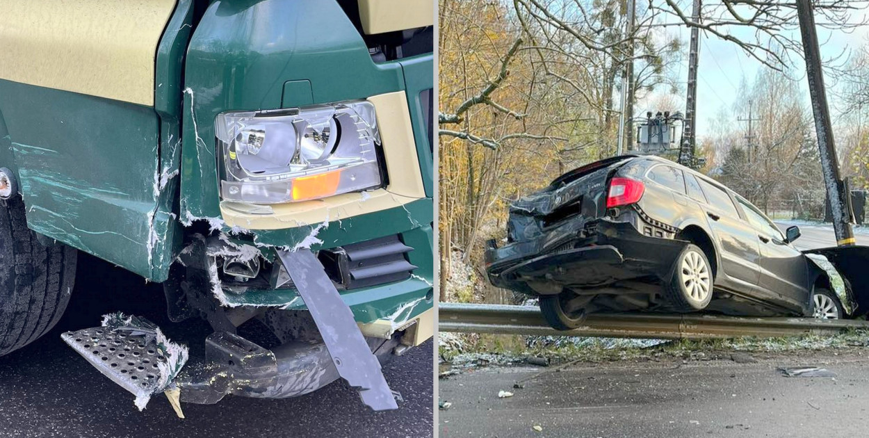 Według relacji świadków, na śliskiej nawierzchni osobowe auto najprawdopodobniej straciło panowanie i uderzyło w ciężarówkę. Siła zderzenia była tak duża, że samochód osobowy został poważnie uszkodzony i znalazł się na poboczu, częściowo zawieszony na barierkach ochronnych. Ciężarówka również odniosła znaczne uszkodzenia, a jej przedni bok uległ deformacji.