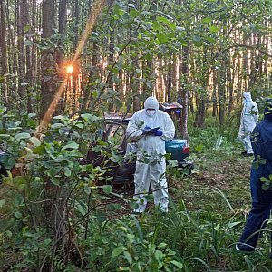 Teren przeczesywany przez służby był wyjątkowo trudny – podmokły, zalesiony, niemal niedostępny. W akcji wykorzystywano śmigłowiec „Bell”, drony z kamerami termowizyjnymi, psy tropiące i wyszkolone do odnajdywania zwłok.