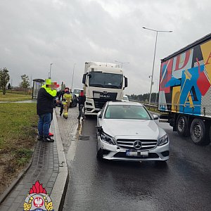 Do zdarzenia doszło w czwartek (30 października) o godzinie 11:41 na Trasie Wschodniej w Toruniu, na odcinku drogi krajowej nr 91. W kolizji brały udział dwa samochody osobowe i samochód ciężarowy. Na miejscu działały zastępy strażaków z Jednostki Ratowniczo-Gaśniczej nr 2.