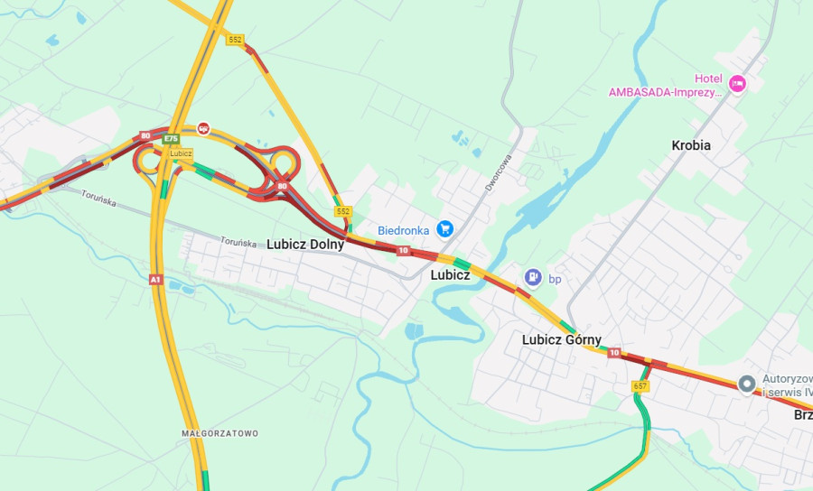 W środę, 26 listopada, około godziny 20:13 służby drogowe przekazały komunikat o poważnych utrudnieniach na drodze krajowej nr 10 w miejscowości Lubicz Górny (trasa Toruń – Lipno).