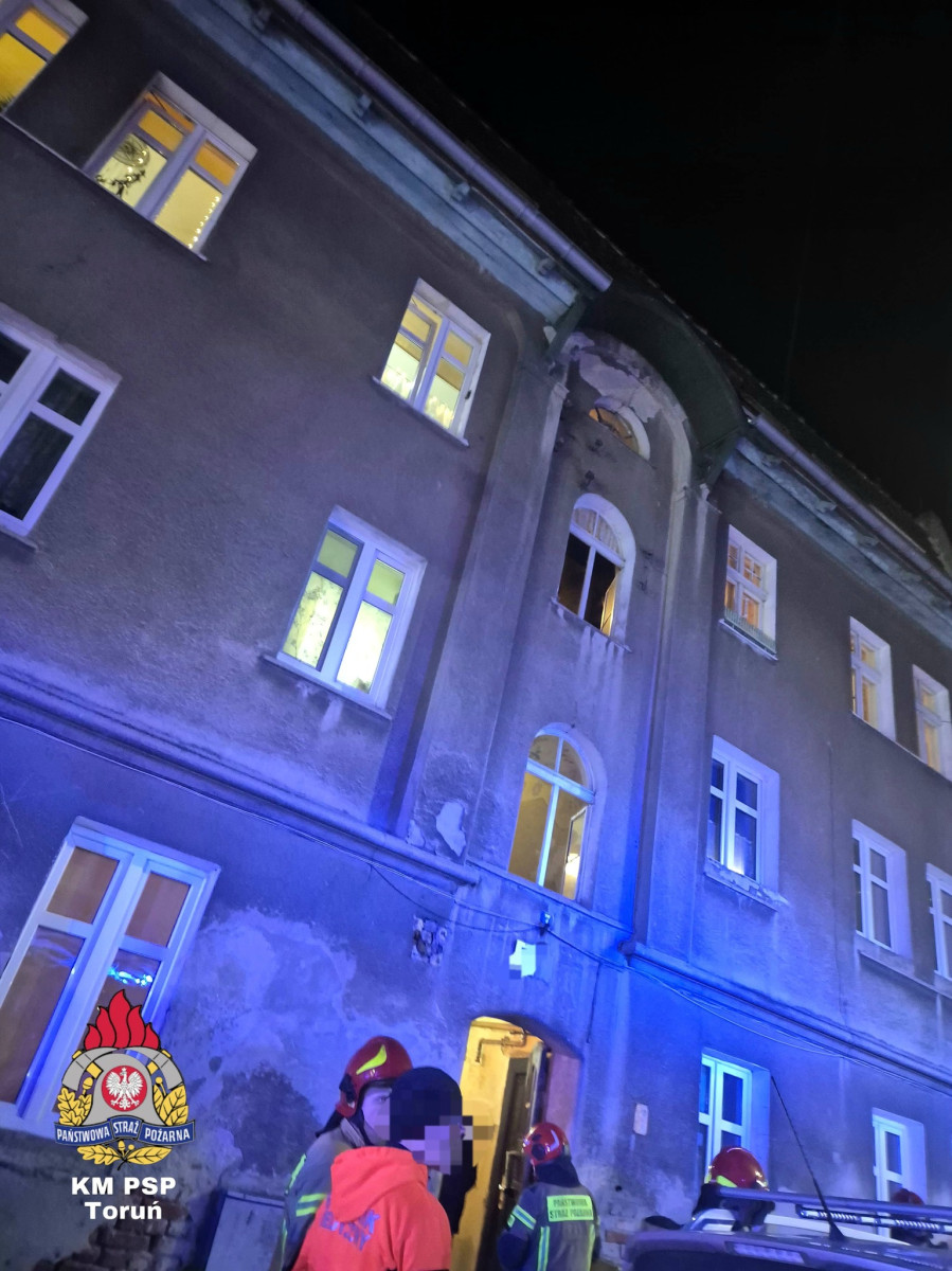 Jak poinformowała Komenda Miejska Państwowej Straży Pożarnej w Toruniu, w wyniku zdarzenia nikt nie został poszkodowany. Strażacy zakończyli działania po zabezpieczeniu miejsca i upewnieniu się, że nie ma dalszego zagrożenia dla mieszkańców.