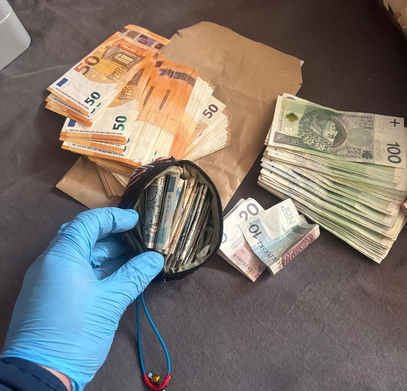 Dodatkowo przy zatrzymanym znaleziono gotówkę, blisko 34,5 tysiąca złotych, 6400 euro oraz pieniądze w innych walutach.