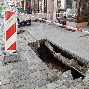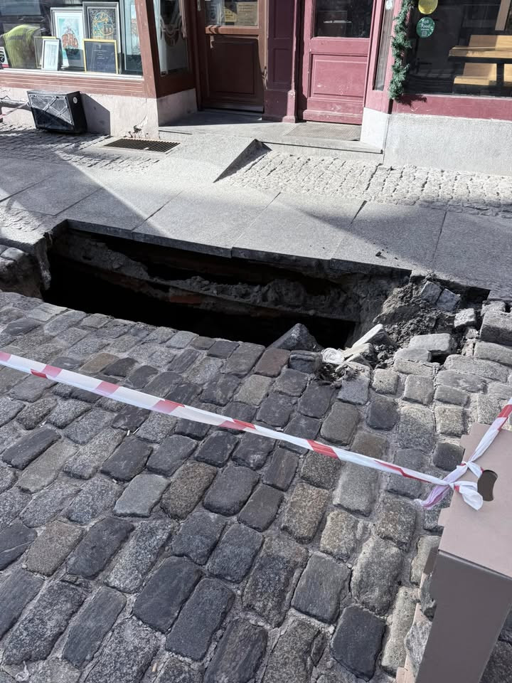– Dzień dobry. Na ulicy Ducha Świętego na starówce zapadł się chodnik. Wielka dziura na samym środku