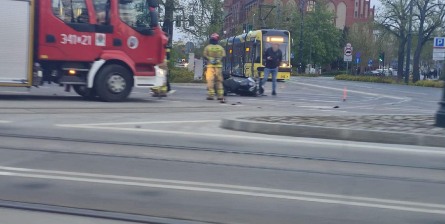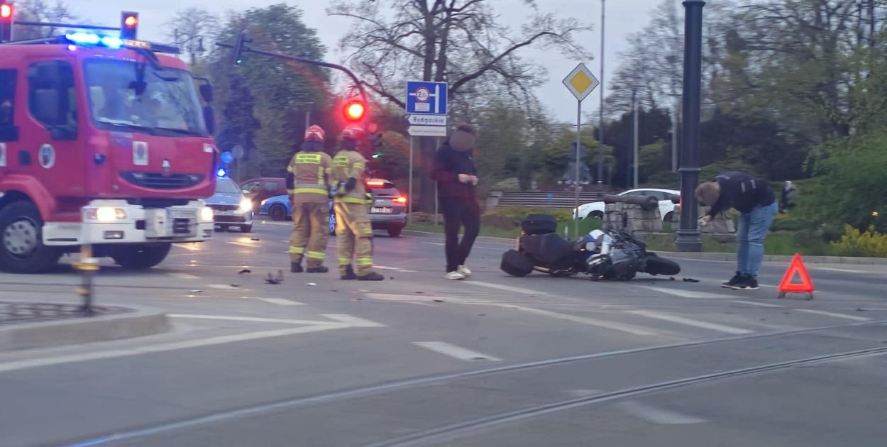 Wieczorne utrudnienia w centrum Torunia. Na Alei Jana Pawła II, w rejonie Placu Rapackiego, doszło do zderzenia samochodu osobowego z motocyklem. Na miejscu pracują służby.