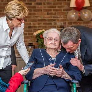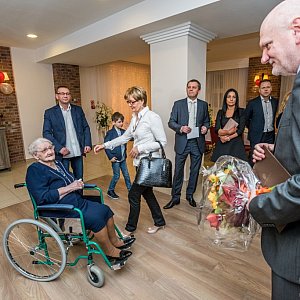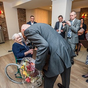 - To piękny jubileusz - mówił, wręczając prezent stulatce. - Zawsze była pani u boku męża, dzięki temu małżeństwo wychowaliście państwo pięć córek - to piękne wiano, jakie zostawiliście. Niech zdrowie nadal pani dopisuje, a miłość bliskich będzie z panią do końca życia.
