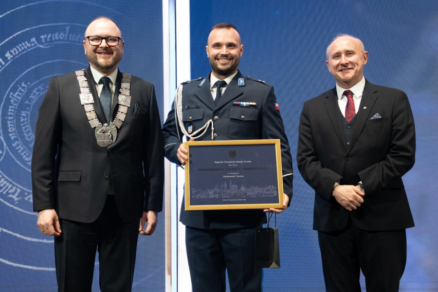 Podkomisarz Łukasz Grabowski z Komenda Miejska Policji w Toruniu znalazł się w gronie laureatów Nagród Prezydenta Miasta Torunia za lata 2024–2025. Funkcjonariusz został wyróżniony w prestiżowej kategorii „Osobowość Torunia”. Uroczysta gala odbyła się 20 stycznia w Dwór Artusa i zgromadziła przedstawicieli władz miasta, instytucji oraz społeczników.
