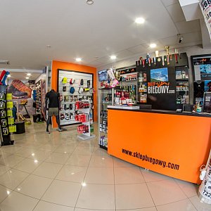 Półki są wypełnione po brzegi sprzętem wiodących producentów. Oczywiście dominuje sportowe obuwie, ale ofertę uzupełnia odzież termiczna, skarpety, pulsometry, okulary, zegarki, latarki i stopery. Asortyment możemy też wykorzystać podczas ćwiczeń na siłowni i na zajęciach fitness.