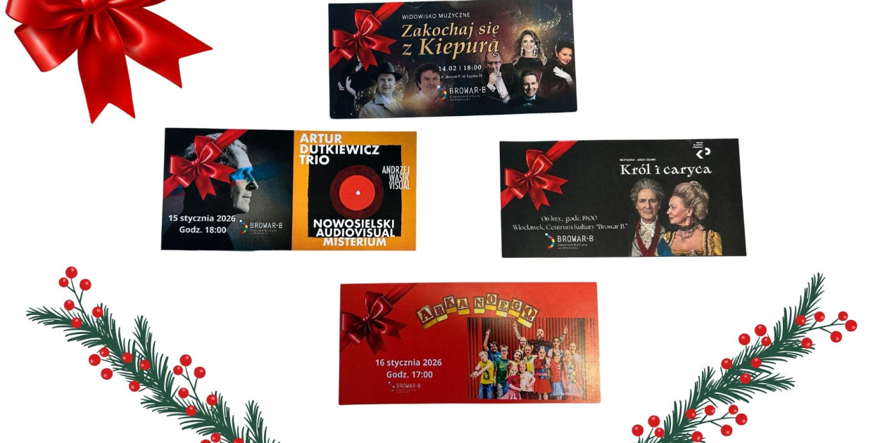Nie masz jeszcze pomysłu na świąteczny prezent, który naprawdę zrobi wrażenie? Zamiast kolejnej rzeczy, która trafi na półkę, warto podarować emocje i czas spędzony razem. Centrum Kultury „Browar B.” we Włocławku przygotowało świąteczną ofertę biletów prezentowych – eleganckich, starannie wydrukowanych i gotowych do wręczenia pod choinkę.