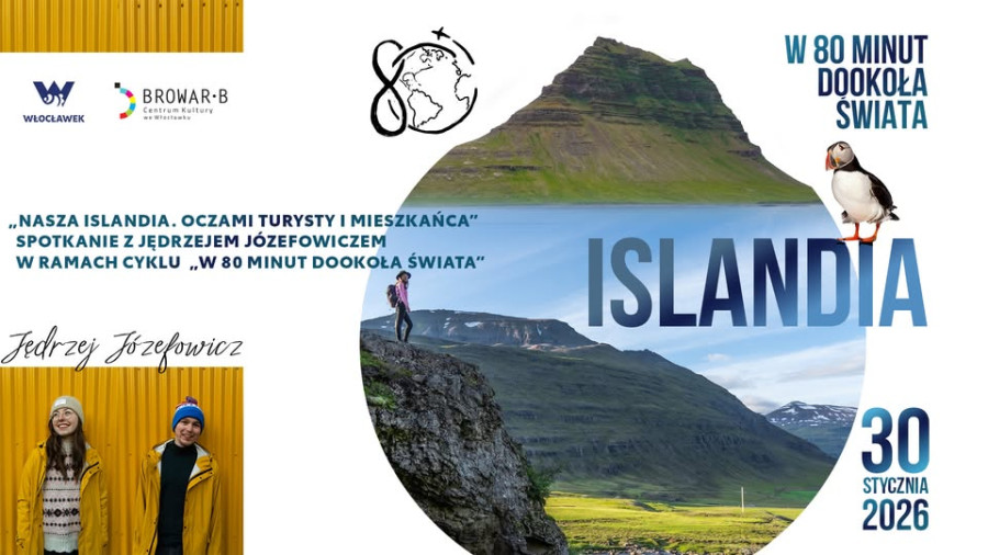 Centrum Kultury „Browar B.” zaprasza na kolejne spotkanie podróżnicze w ramach cenionego cyklu „W 80 minut dookoła świata”. Tym razem kierunek wyprawy to Islandia – pokazana nie tylko jako cel turystycznych marzeń, ale też jako miejsce codziennego życia. Gościem wydarzenia będzie Jędrzej Józefowicz, dziennikarz, podróżnik i organizator Zaniemyskiego Festiwalu Przygód.